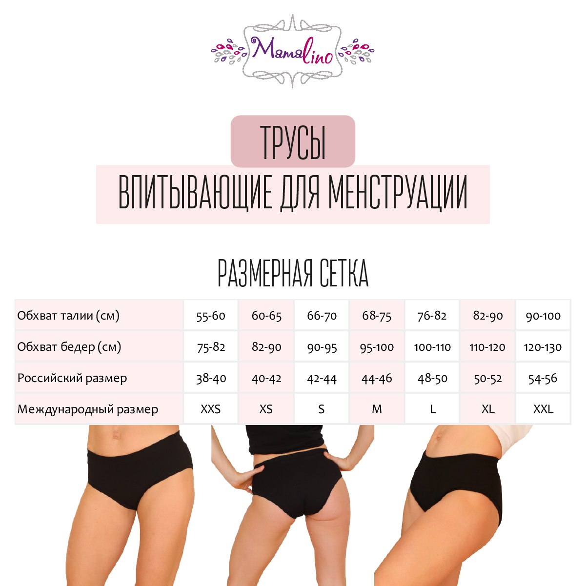 Впитывающие менструальные трусы Mamalino созданы женщинами для женщин. Ведь только мы знаем, что точно необходимо женщине в период менструации. Являются профилактикой молочницы, цистита и других заболеваний.